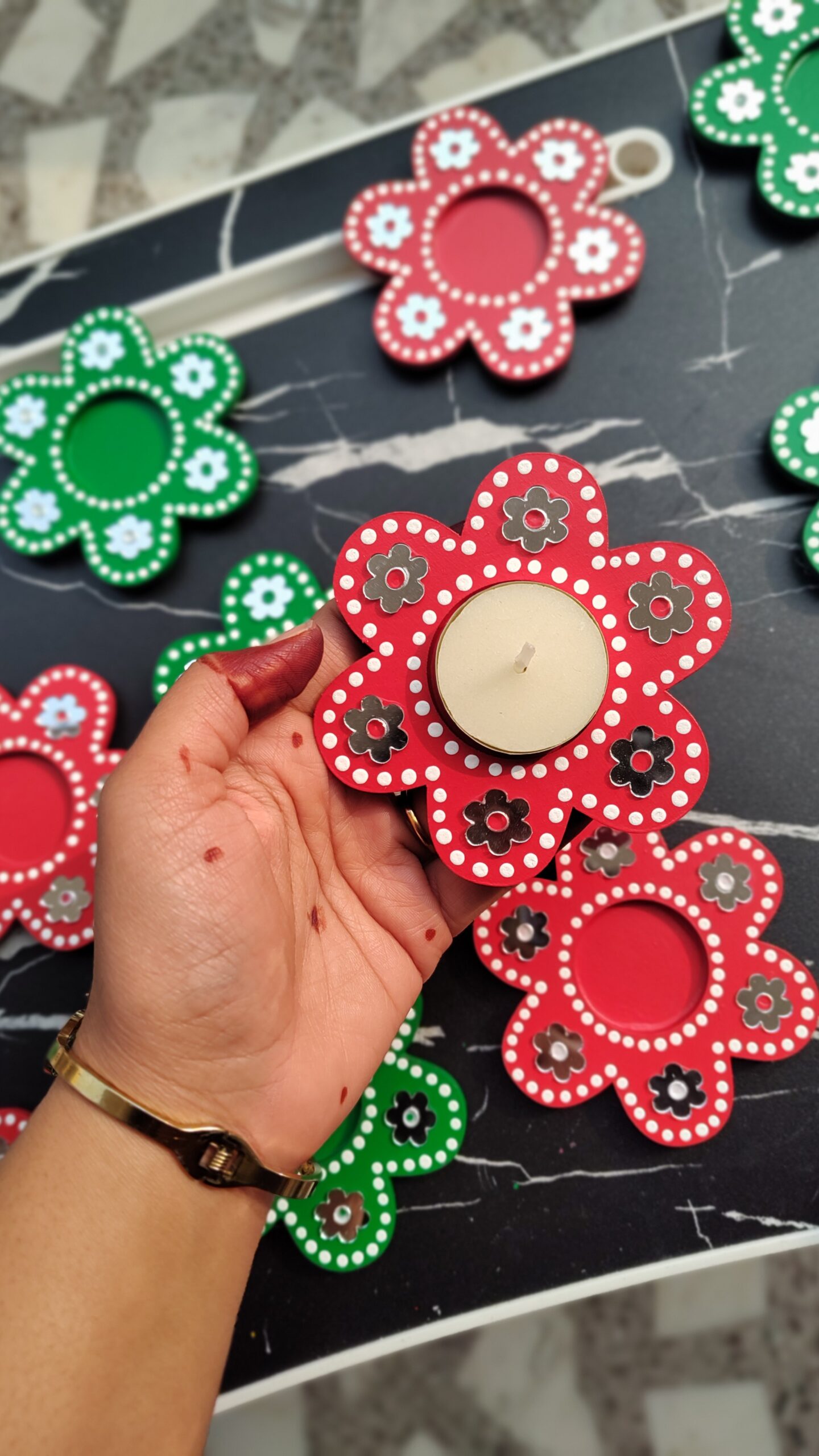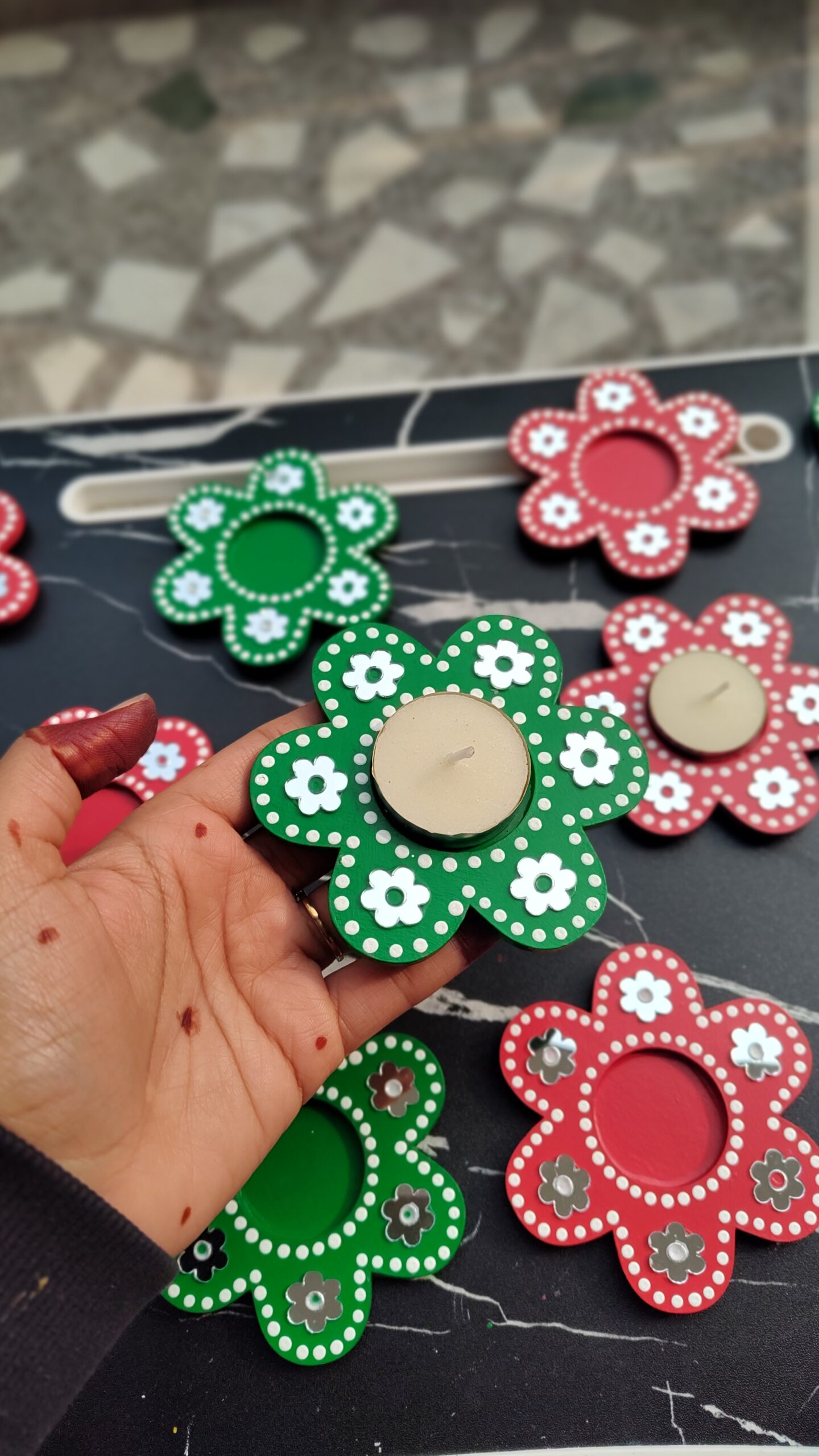 We created this Floral Tea Light Holder to look bright, pretty and festive even before you light them. And once the candle glows, the mirrors reflect the light in the sweetest way. This makes them perfect not only for Diwali and Christmas but also for birthdays, pooja setups, housewarming or even a cosy dinner at home.